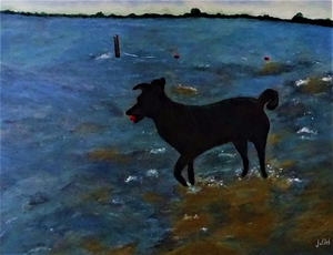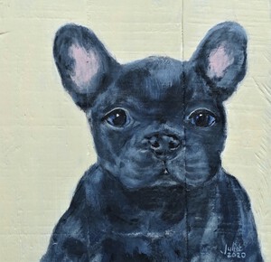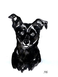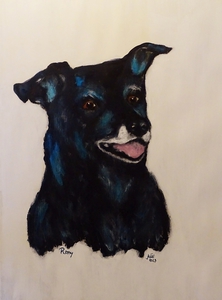 2023Remy, los geschilderd met acrylverf op papier. Superhond.