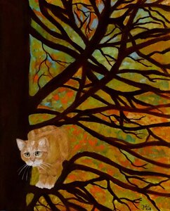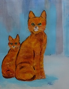 2023Rode katers geschilderd met pastelkleurige achtergrond.