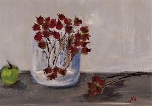 2018Glazen vaasjes met bessentakjes