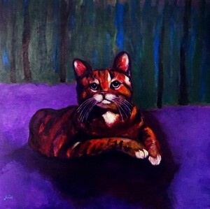 Paarse kat abstract geschilder met bijenwas