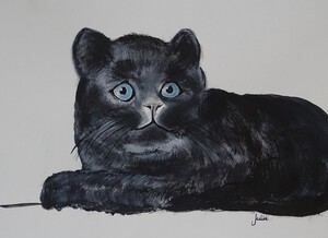 Zwarte kater met blauwe ogen