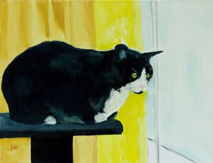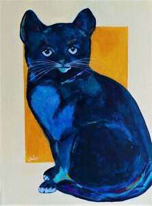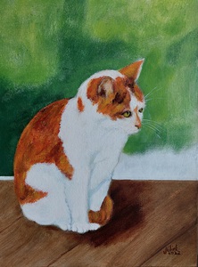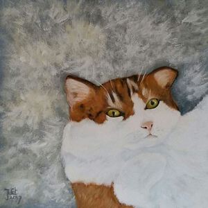 2023Rode katers geschilderd met pastelkleurige achtergrond.